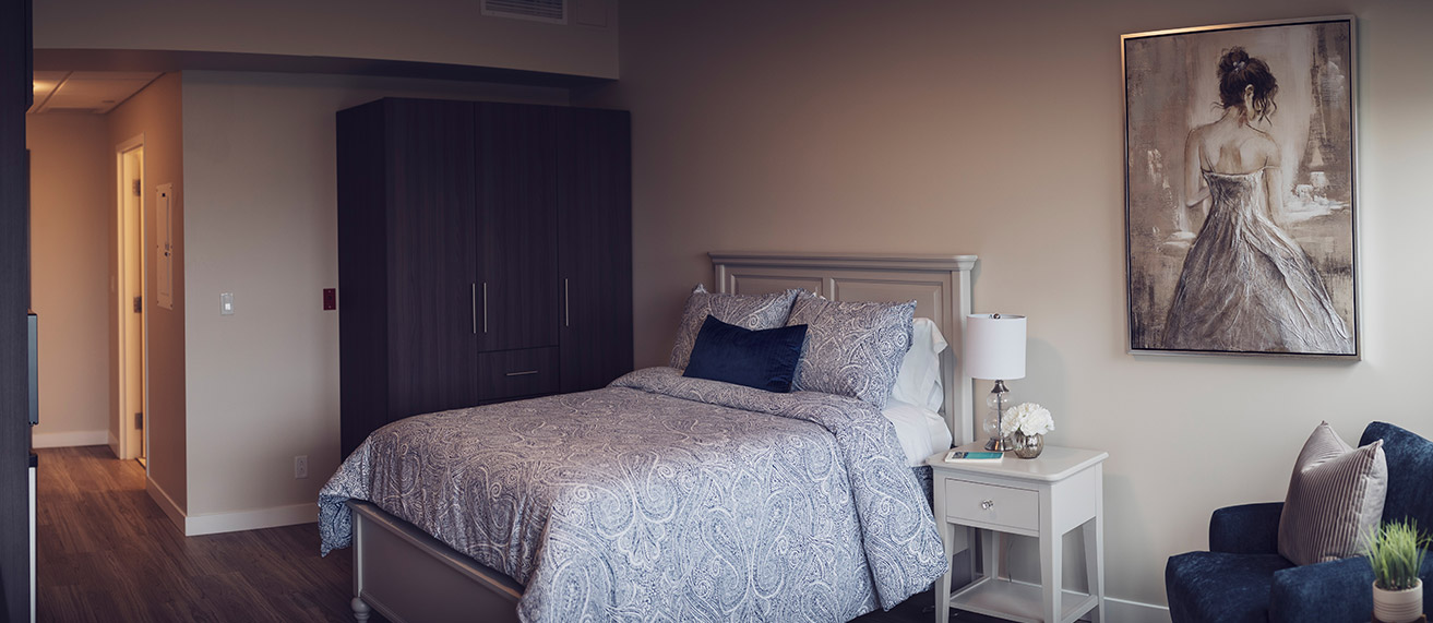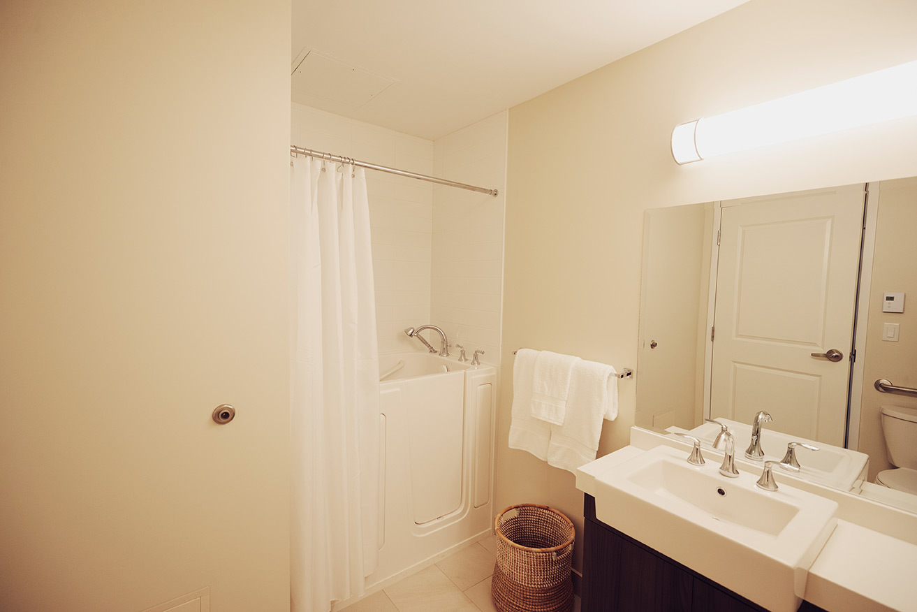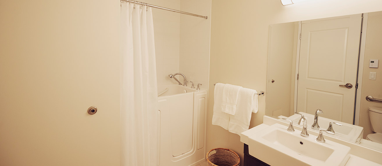 We understand how important your personal living space is. That’s why we offer many suite options: So that you can find the layout that’s right for you. All of our suites include personalized temperature control (with air conditioning), your choice of walk-in tub or shower, a wall mounted TV, roller shades for your sun lit windows and plenty of wardrobe storage. And your fully functioning kitchenette / dining area enables you to have that dine-at-home experience whenever it feels right.